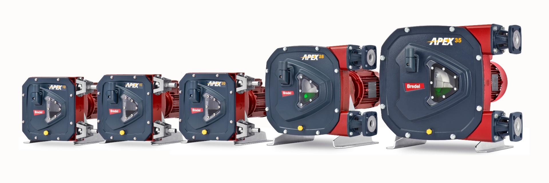 Bredel泵不断发展,在过去的10年里取得了许多显著的成就。一个很好的例子是APEX范围,它于2012年推出,并在2015年进行了扩展。APEX泵的设计提供了极具竞争力的价格/性能比。该系列可提供高达6200 l/h的流量和8bar的排放压力,而更宽的Bredel软管泵系列包括可提供108,000 l/h的流量和16bar的压力。