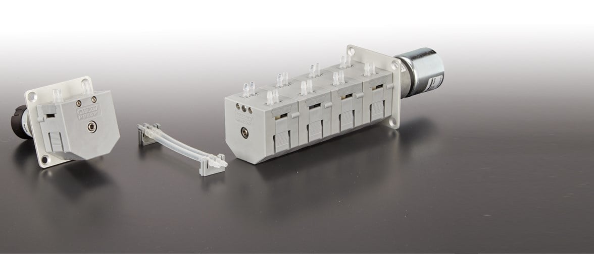 每个泵头有两个通道,同一台电机上最多可连接四个泵头,总共提供八个通道。