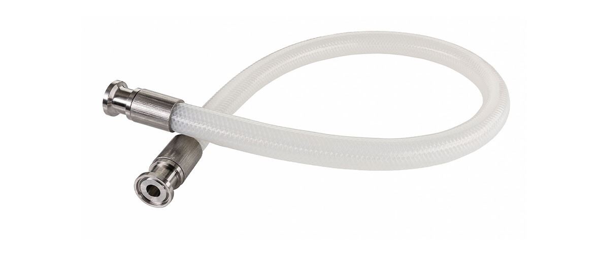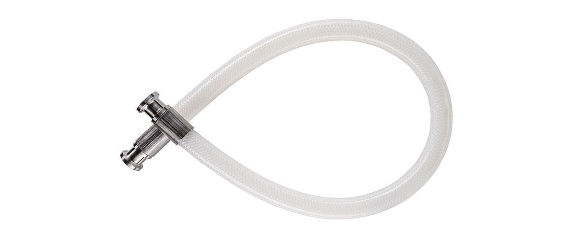 提供一种安全可靠的高压流体输送方法,编织硅胶软管组件结合了BioPure铂固化硅胶软管,配有生物制药级不锈钢三夹连接。